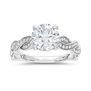 Meet a refined 14K White Gold Lab Grown Diamond Engagement Ring. It features a round lab-grown center diamond of 2.00 carats, set in a prong setting, with 41 pavé diamonds along a twisting shank for a contemporary glow.
