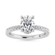 This Hidden Halo Oval Diamond Engagement Ring features a center oval lab-grown diamond encircled by a hidden halo of diamonds....