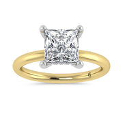 The ring is intended to be worn as an engagement ring, with the hidden halo design adding a subtle surround to the princess center stone. The prong setting provides visibility to the center diamond while keeping stones secure, making it suitable for daily wear and special occasions. It pairs well with a wedding band or can be worn solo for a classic, understated look.