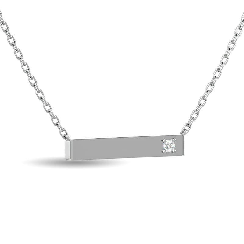 A sleek expression of modern luxury, this bar necklace is crafted in polished sterling silver and accented with 1/20 Ct.Tw....