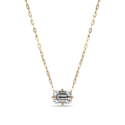 This elegant emerald cut diamond pendant showcases the timeless sophistication of a precisely faceted stone set in 14K sustainable gold. The emerald cut's distinctive step facets create a hall-of-mirrors effect, emphasizing clarity and allowing light to dance through the diamond with refined brilliance. Crafted from responsibly sourced 14K gold, this pendant combines ethical luxury with enduring style. The piece arrives on a delicate 16-inch chain with a 15-inch option, both secured by a reliable lobster clasp closure. Perfect for everyday wear or special occasions, this pendant pairs beautifully with any jewelry collection. Pictured here in a 1-carat emerald cut diamond, though available in various carat weights and specifications to suit your preferences.