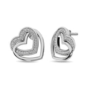 Diamond Duel Heart Earrings 1/50 ct tw in Sterling Silver