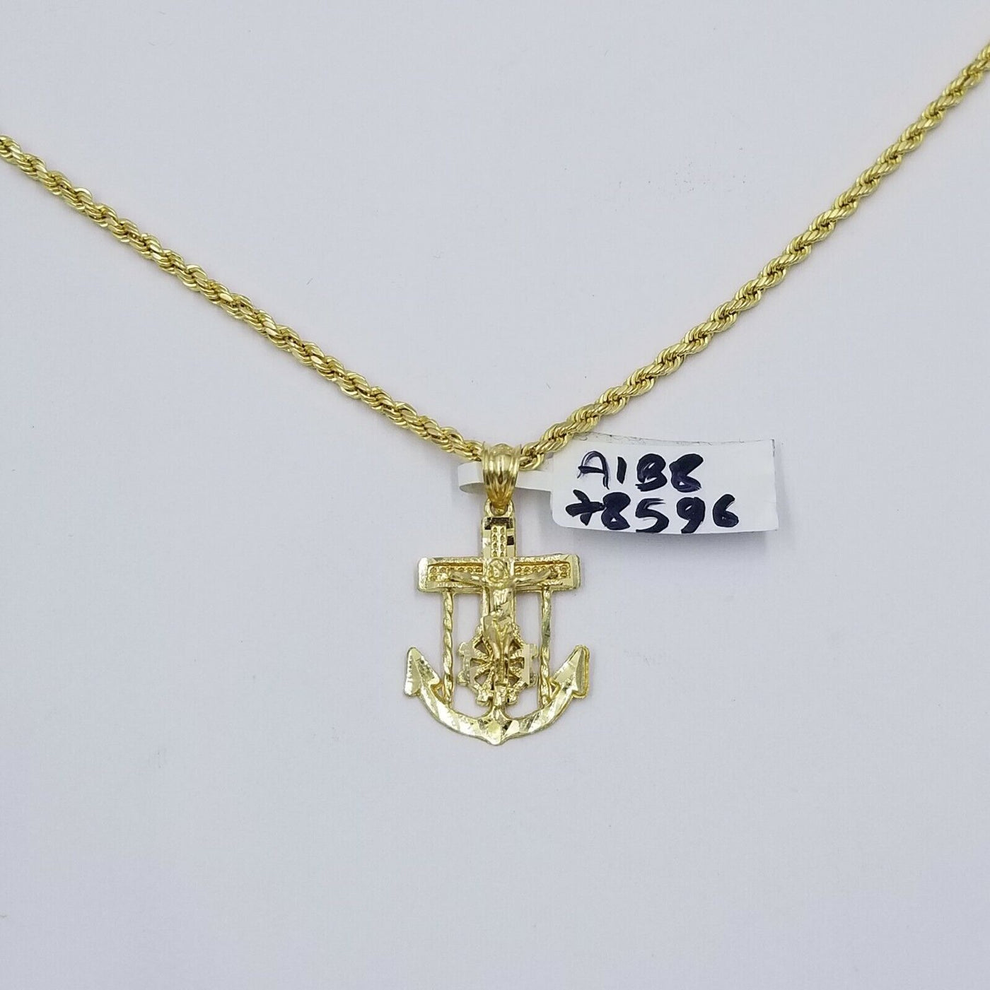 10k Gold Anchor Pendent Rope Chain 2.5mm 18" 20" 22" 24" 26" 10kt Necklace Cham