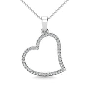 Modern and elegant this diamond heart pendant fashioned in cool 10K white gold. This open heart pendant is completely outlined...