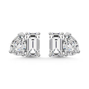 These are lab-grown diamond earrings set in 10K white gold. The four-stone design combines emerald-cut and pear-cut shapes with a...
