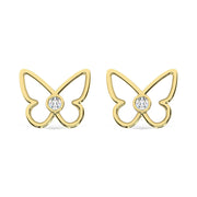 These are lab-grown diamond earrings set in 10K yellow gold. The pair features two round-cut lab-grown diamonds in a classic...