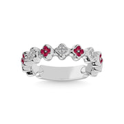 14K White Gold 1/3 Ct.tw Alternate Ruby & Diamond Stackable Band