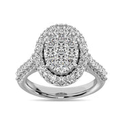Crafted in 14K white gold, this ring features oval shape frame set with 2 Ct.Tw. shimmering round diamonds and surrounded...