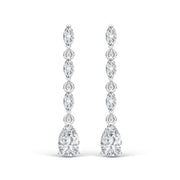 These 14K white gold lab-grown diamond dangler earrings feature a total weight of 1 CTW. Eight lab-grown diamonds cascade in marquise and pear shapes, set in a prong setting to create a moving, light-catching shimmer.