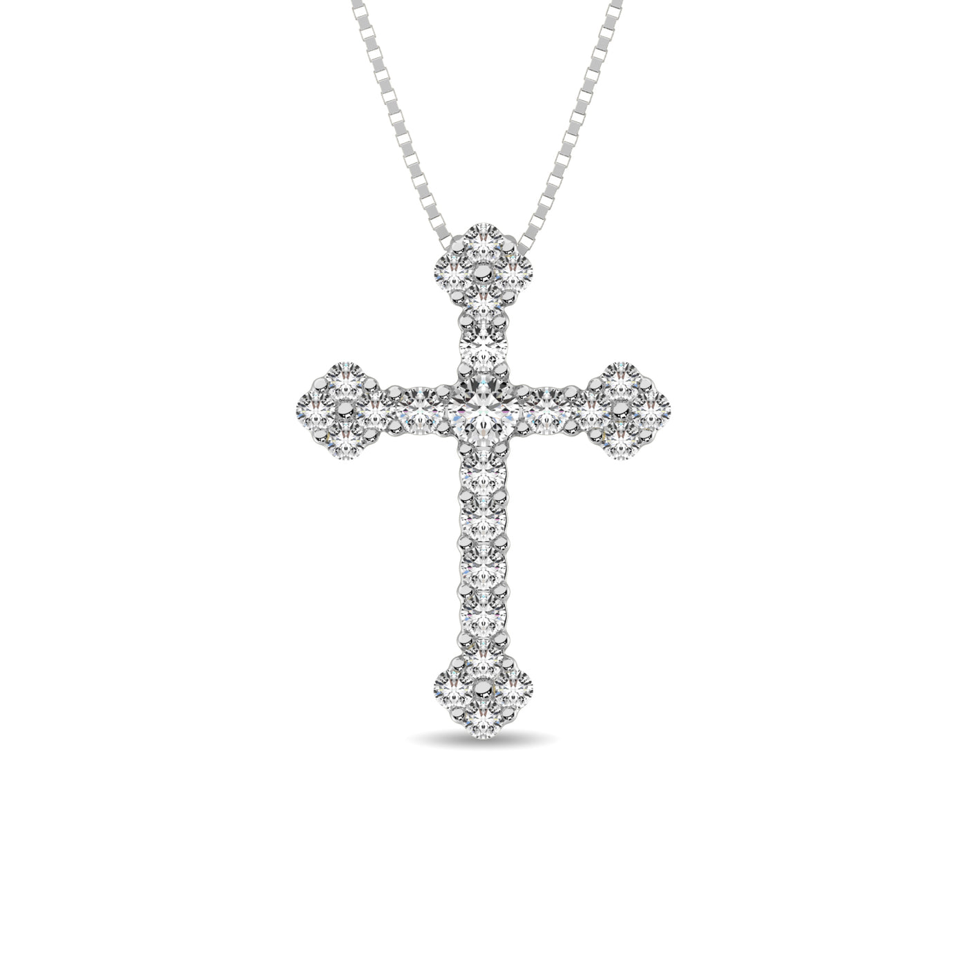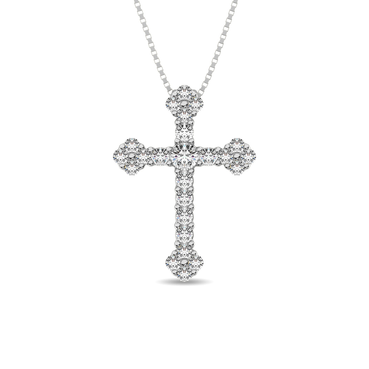 This elegant cross pendant is crafted in 10K white gold and adorned with 1/3 Ct.Tw. of sparkling diamonds, offering a...