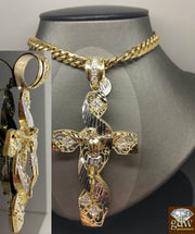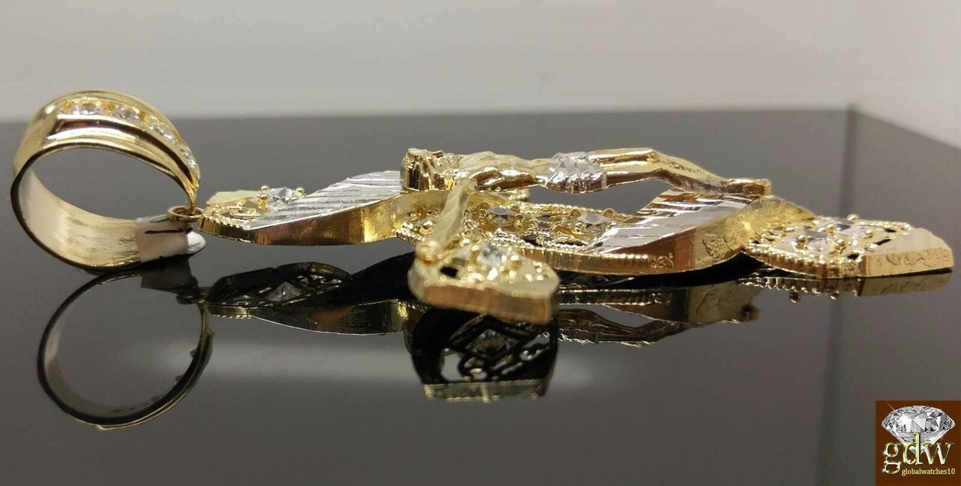 New 10k Yellow White Gold Jesus Crucifix Cross Pendent Diamond Cut